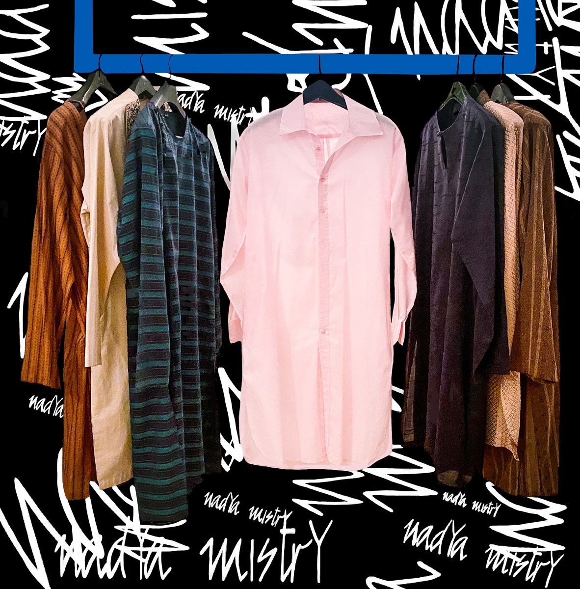 Woven-crepe embossed and striped, side-slit buttoned kurta in shades of Cedar and Tawny Mushroom.