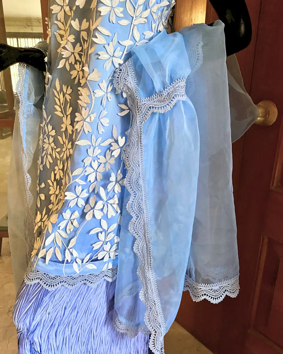 Why monochrome ethnic is having a moment: It photographs well, offers styling versatility, and stands out in a sea of heavily embellished options. This powder-to-periwinkle blue gradient demonstrates how to work a single color family across different fabrics and textures. Essential for spring/summer wedding season 💙