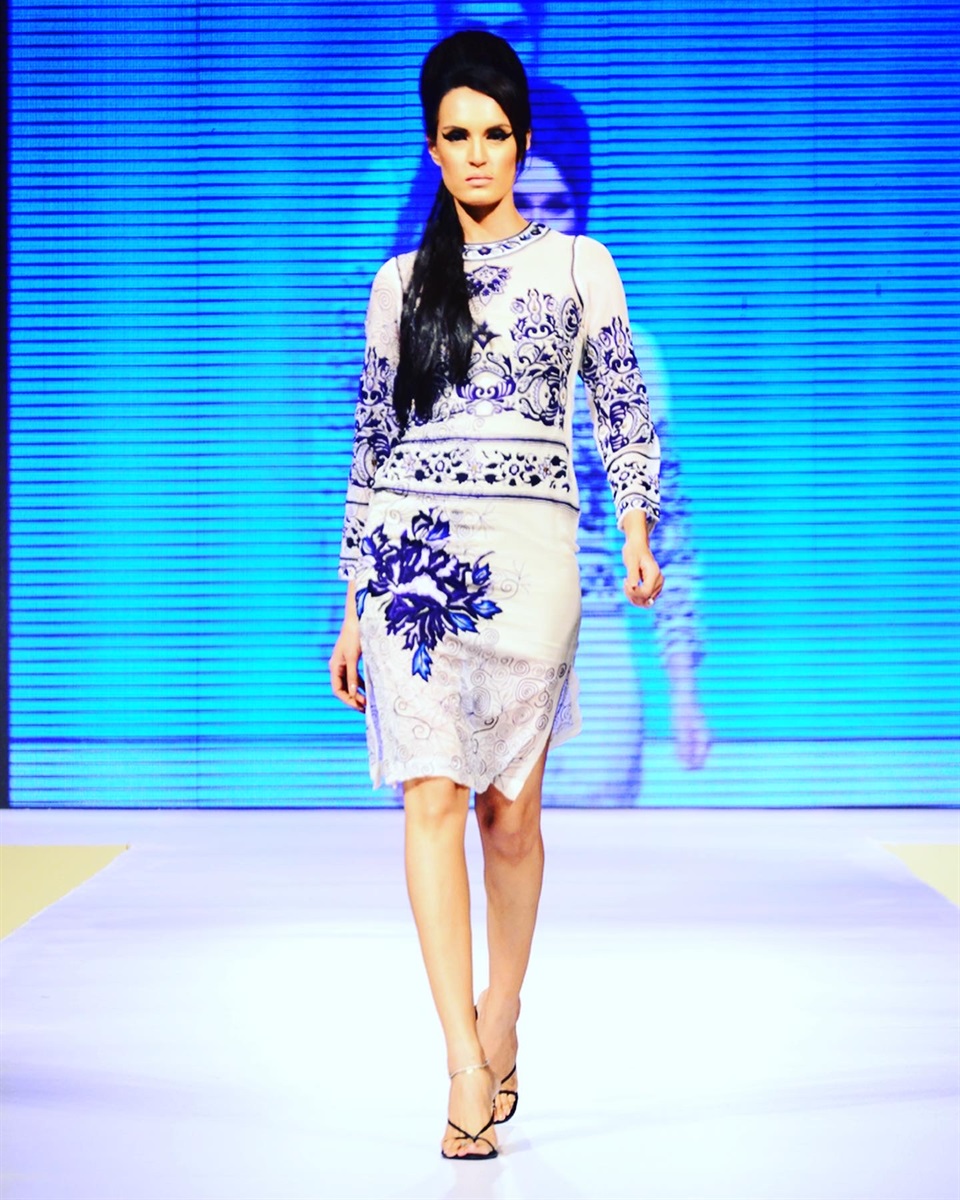Nadya Mistry's artisinal kaftans evoke bygone eras and exotic locales, yet emit an uber-chic and contemporary vibe. Exult in the luxury of this cobalt-blue silk kaftan offset with subtle Renaissance prints and intricate prismatic crystal work and radiate subtle glamour and a je ne sais quoi insousiance...